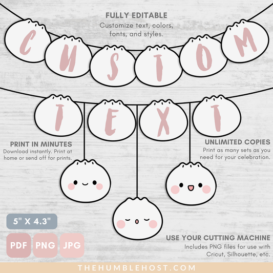 Cute Dumpling Banner | Little Dumpling Theme | Custom Garland | Editable Template