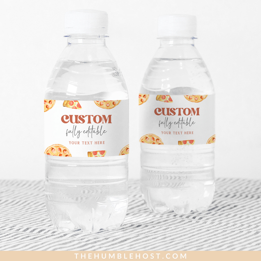 Pizza Water Bottle Labels | Custom Text | Editable Template