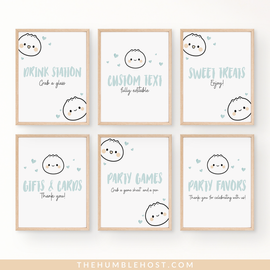 Cute Dumpling Table Signs, Dim Sum Custom Sign | Little Dumpling Theme | Printable Event Decor | Editable Template