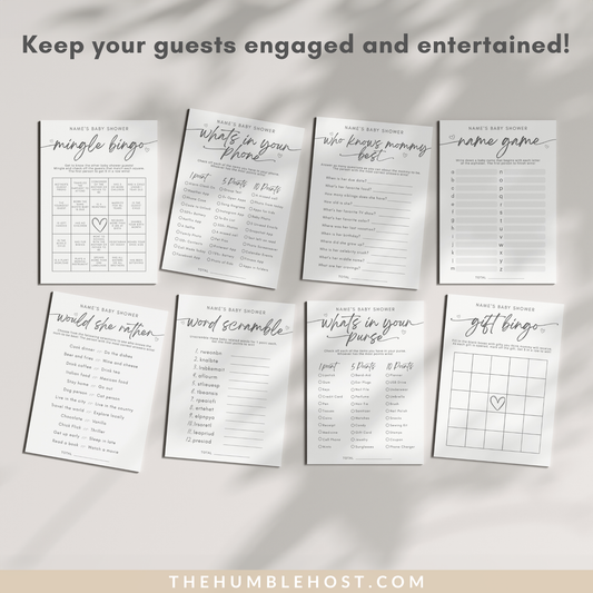 Minimalist Baby Shower Games | Set of 36 | Editable Template